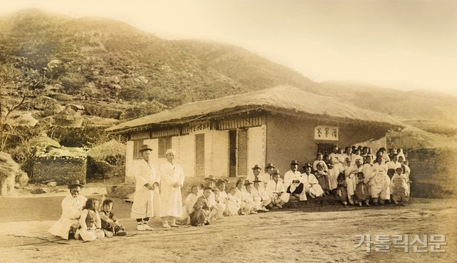 1915년 11월 19일 대구대목구 초대 교구장 드망즈 주교 등이 상주 하갈 공소를 사목방문한 모습